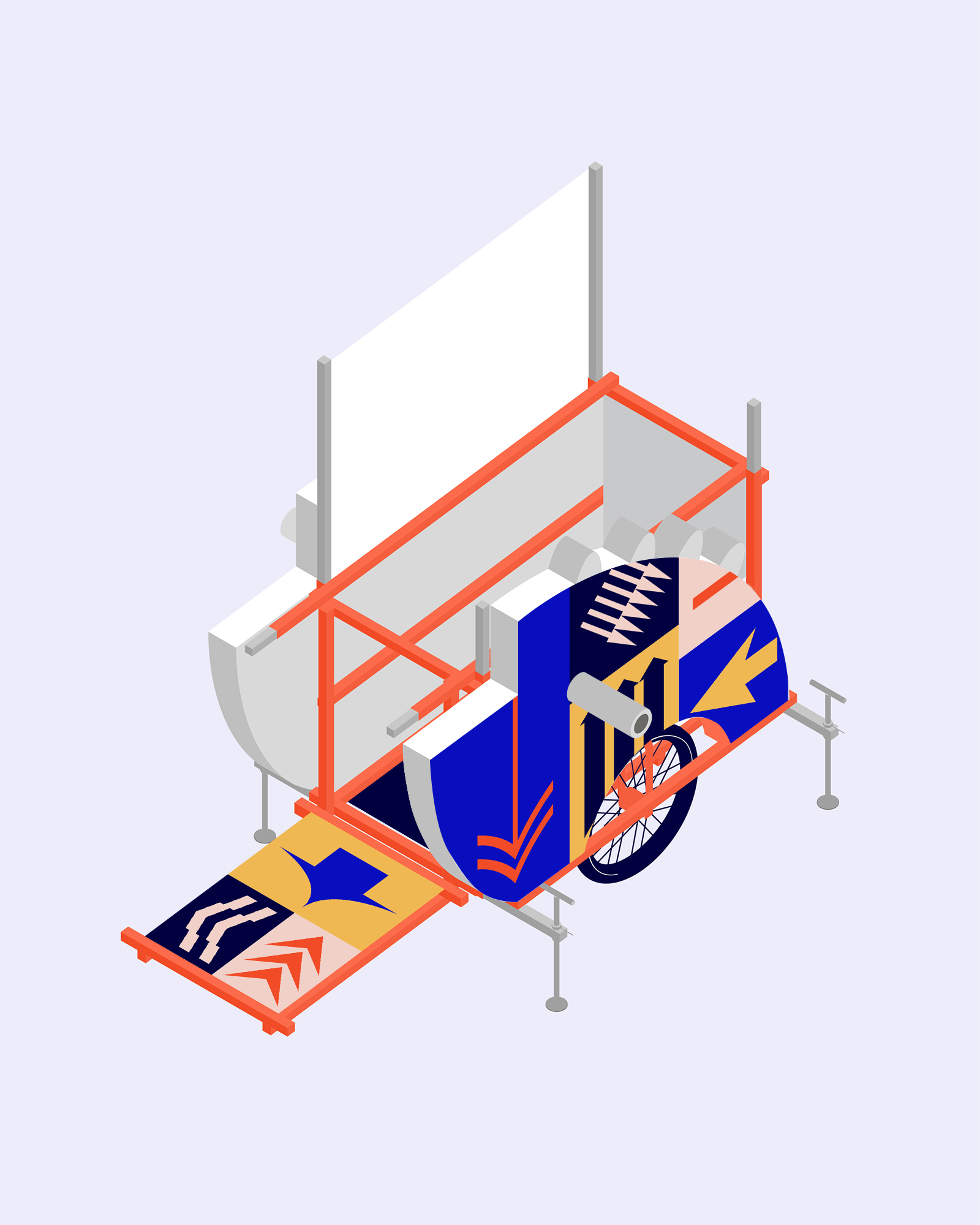 Sono traini per biciclette e strumenti multifunzionali, che promuovono esperimenti ed alleanze in antitesi alla specificità e all’individualismo dell’automobile. Servono ad usi singoli, promiscui, collettivi; si compongono e scompongono a seconda dei bisogni. Sono dispositivi estroversi, costruiti per entrare in sinergia tra di loro e con il contesto e per rafforzare il rapporto tra gli/le abitanti e la città.