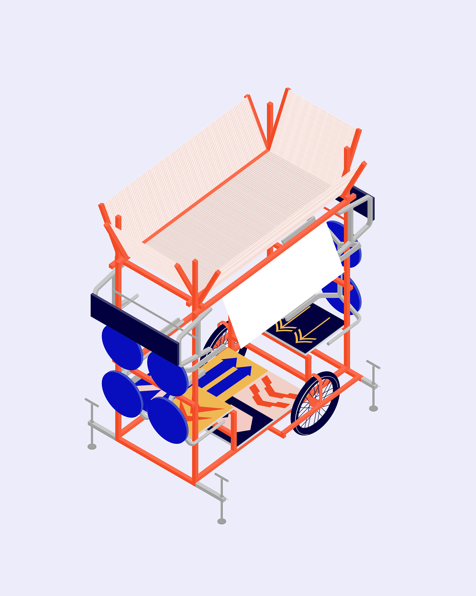 I Co-Carts sono macchine per la collettività che, attraverso le loro funzionalità, forme e strumenti, suggeriscono la nascita di collaborazioni, potenziano le peculiarità delle persone coinvolte e danno forma a usi inediti dello spazio pubblico.